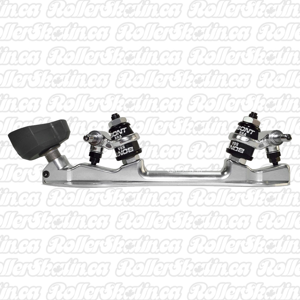 The Bont Athena plate is BONT's take on the classic quad plate! They designed the plate with smooth, elegant lines that will last the test of time. The chassis is made of extruded 6061 aircraft aluminum. The cushions are made in the USA from premium ultra high rebounding urethane. The plate is made to extremely tight tolerances. The plate is has a low profile which means that the wheels are closer to the boot than most plates. This lowers your center of gravity and improves edging. The Athena plate has proven itself on the toughest skaters in the world: the Bont Quadstar derby team. The 20-degree kingpin angle is great for making tight turns as well as top end speed. A variable adjustment nut and grub screw allow you to skate your plate tight or loose to suit your style. The plate features delrin pivot cups. The plate is triple polished with a final brilliant shine polish. Together, it delivers optimum power transfer, total control, perfect edge grip and the one thing every skater is looking for – more speed! Comes as a pair of plates - with or without ToeGo toe stops.